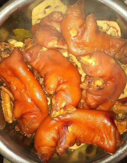 据老板透露,他们家的卤水是独家配方,经过多年的研制,味道独特。卤水中含有多种香料,如八角、桂皮、香叶等,这些香料经过长时间的熬制,味道浓郁,让猪蹄更加美味。